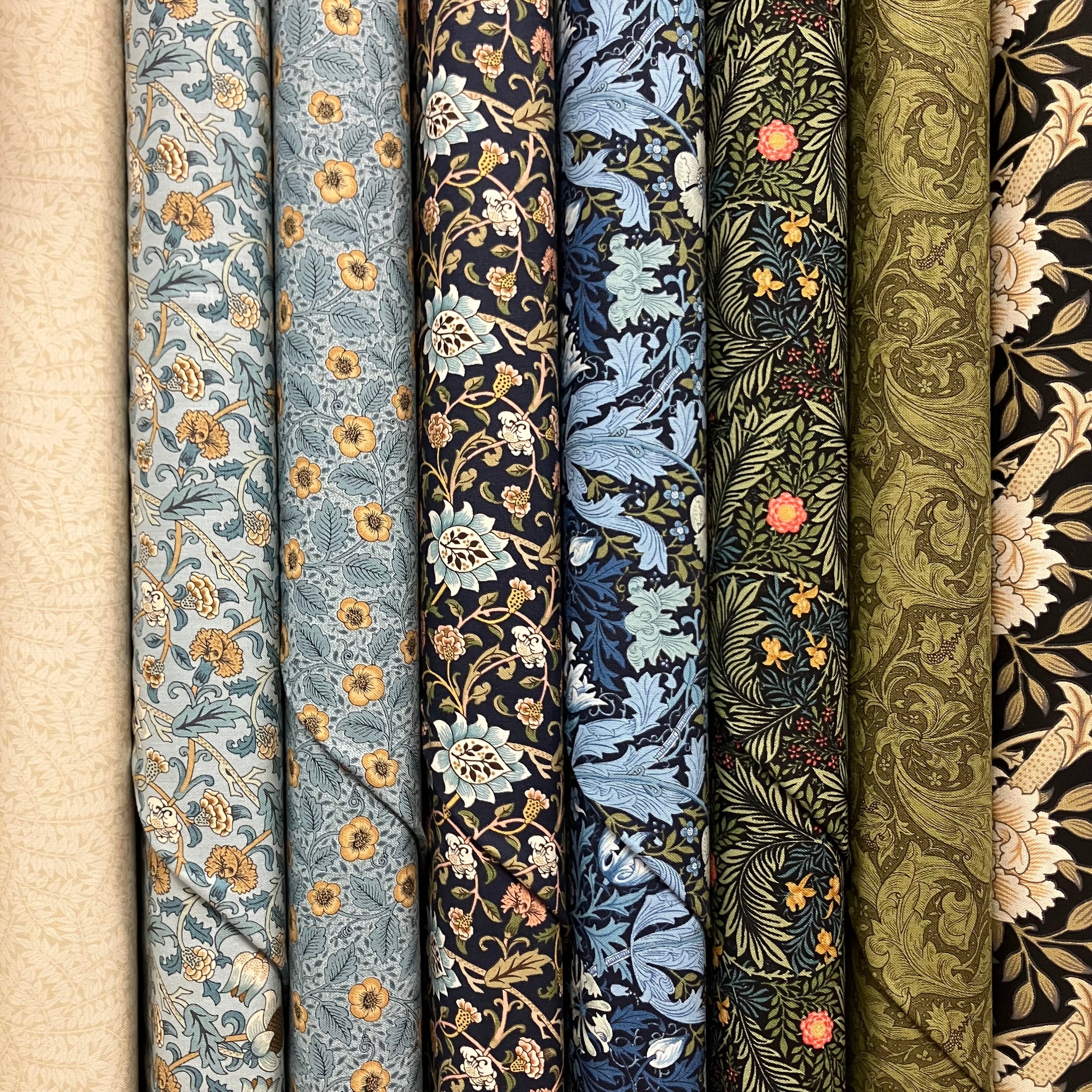 Morris Manor 8 Fat Quarter (FQ) Bundle contains 8 FQ from the Morris Manor line by Barbara Brackman for Moda Fabrics.