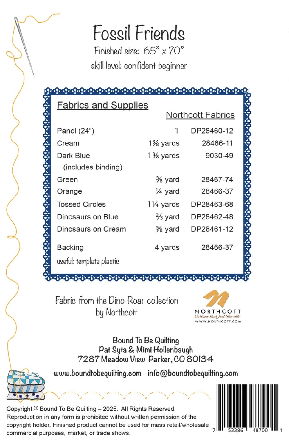 Dino Roar, Fossil Friends, Quilt Pattern