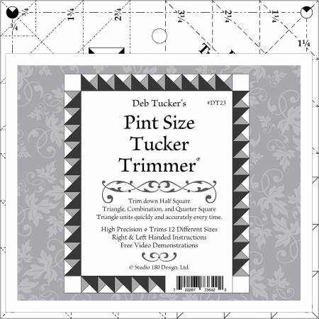 This makes unit construction easy, precise, and accurate every time. Compact and easy to read, the Pint Size Tucker Trimmer delivers the same great results quilters expect from Studio 180 Design tools. It’s the perfect choice for those who love working with smaller units.