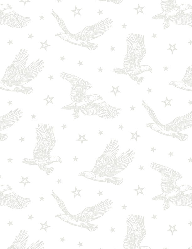 Strength & Honor – Eagles – White on White – Cotton Quilting Fabric