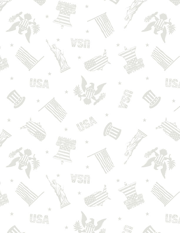 Strength & Honor – Patriotic Toss – White on White – Cotton Quilting Fabric